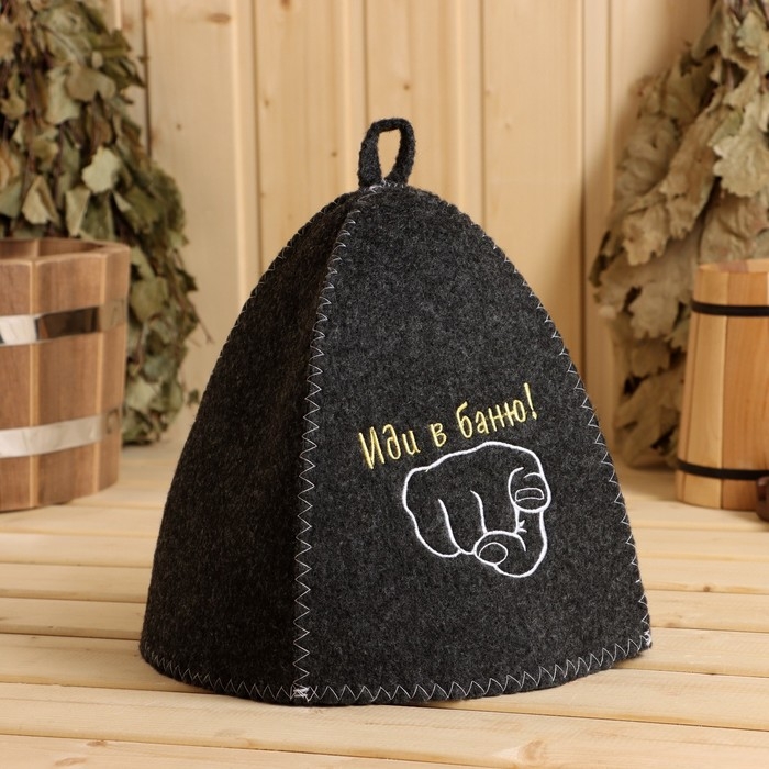Шапка для бани с вышивкой "Иди в баню!", серая, фасовка 5шт