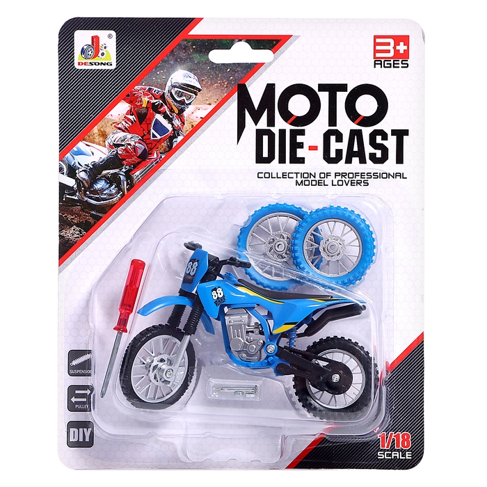 Мотоцикл «Эндуро», металлический, со сменными колёсами, 1:18, цвет МИКС