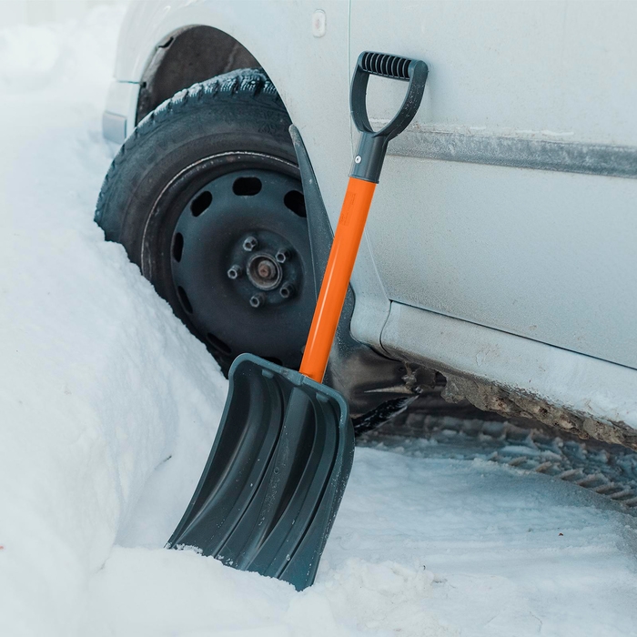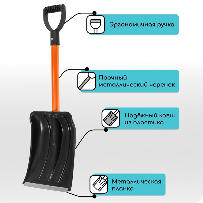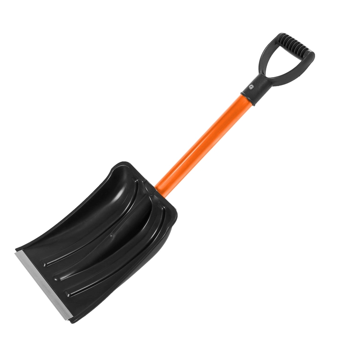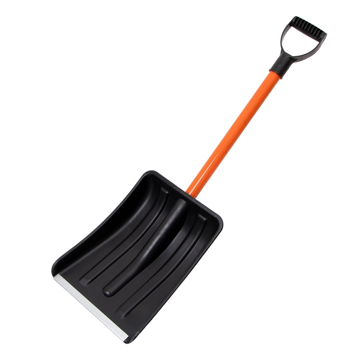 Лопата для уборки снега, автомобильная, пластиковый ковш 380 × 370 мм, алюминиевая планка, алюминиевый черенок, с ручкой