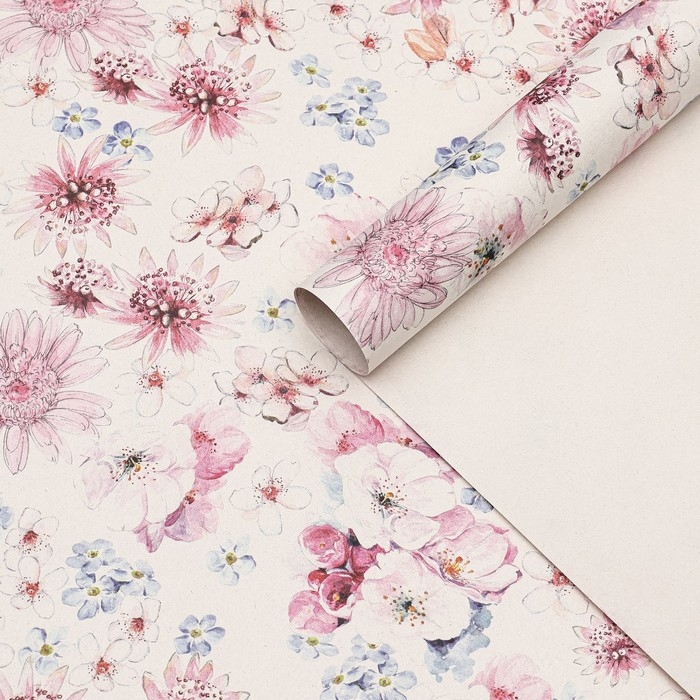 Бумага упаковочная, крафт "Цветочное настроение", 70 х 100 см, 1 лист