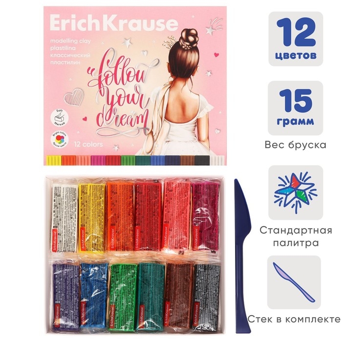 Практичный классический пластилин ErichKrause средней пластичности для решения широкого круга творческих задач. Улучшенная цветовая палитра содержит яркие насыщенные цвета. Для получения новых оттенков все цвета хорошо смешиваются. Классический пластилин отлично сохраняет свою форму и не застывает на воздухе. В комплекте для декорирования и моделирования прилагается стек