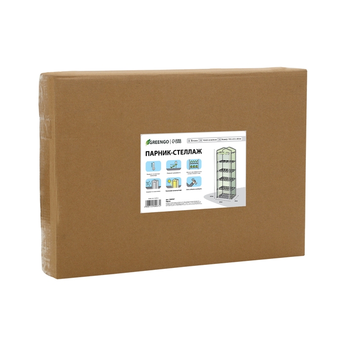 Парник-стеллаж, 5 полок, 193 × 69 × 49 см, металлический каркас d = 16 мм, чехол плёнка 80 мкм, Greengo