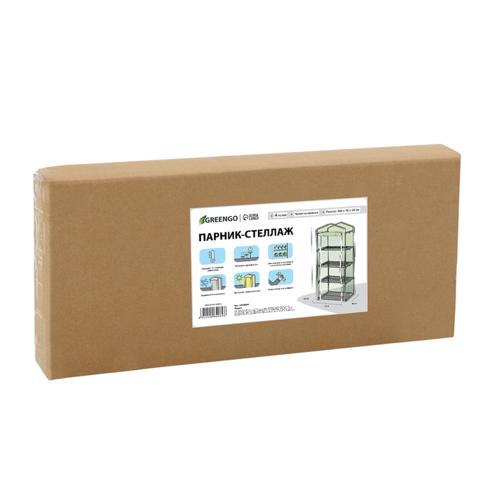 Парник-стеллаж, 4 полки, 160 × 70 × 30 см, металлический каркас d = 16 мм, чехол плёнка 80 мкм, Greengo