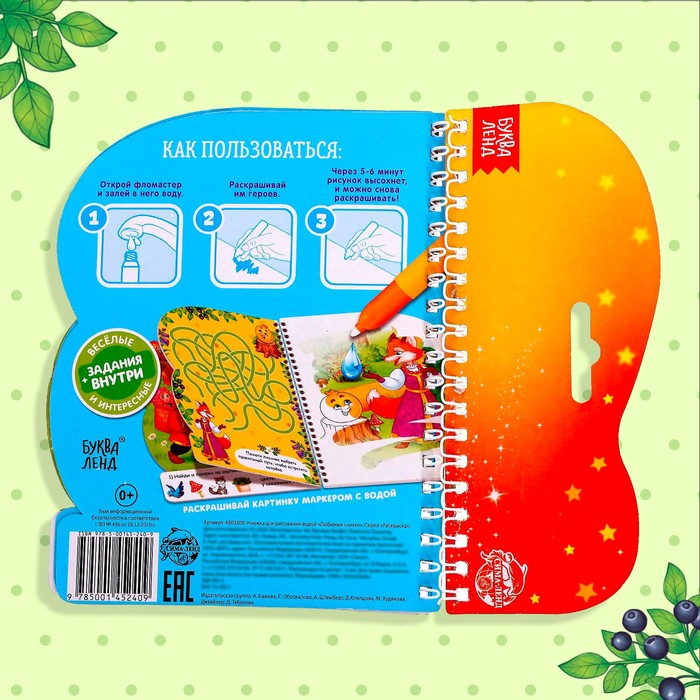 Книжка для рисования водой многоразовая «Любимые сказки» с водным маркером, 10 стр.