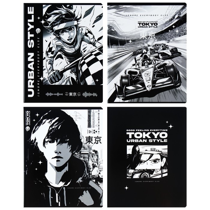 Тетрадь 96 листов в клетку на скрепке Аниме. Tokyo, обложка мелованный картон, ВД-лак, МИКС