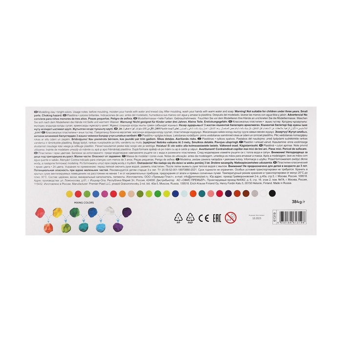 Пластилин 24 цвета, 384 г, ErichKrause "Классический", в картонной упаковке