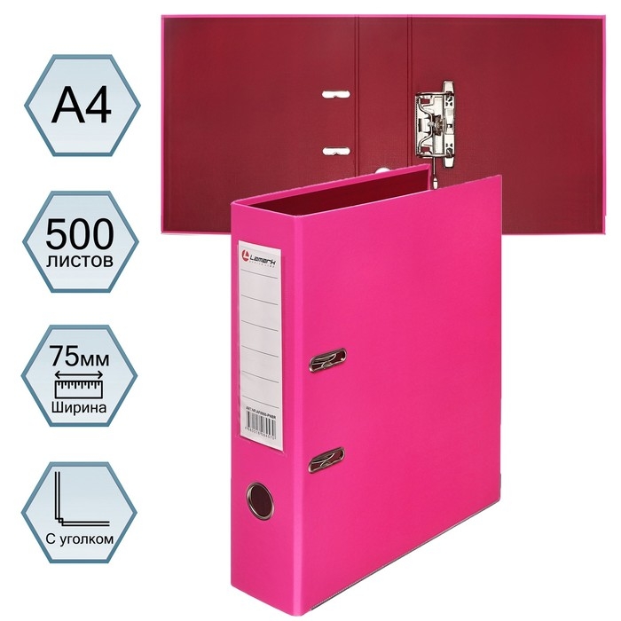 Папка-регистратор А4, 75 мм, Lamark, ПВХ, двухстороннее покрытие, металлическая окантовка, карман на корешок, собранная, розовый/бордовый