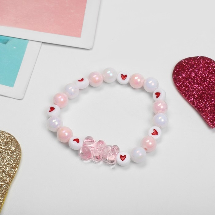 Браслет детский «Выбражулька» мишка в сердечках, цвет бело-розовый