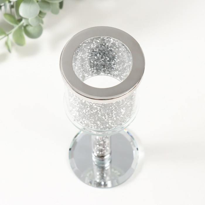 Подсвечник стекло на 1 свечу d=4,5 "Орлеан"серебро 7х7х18 см