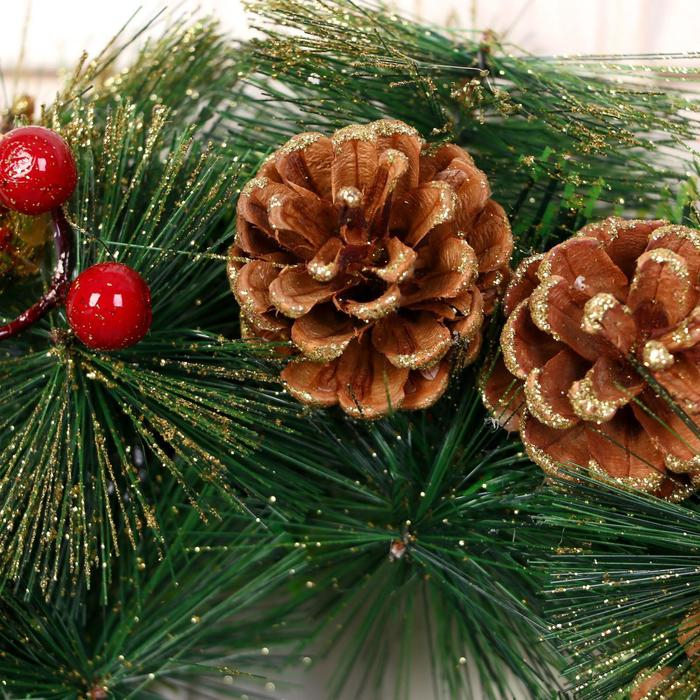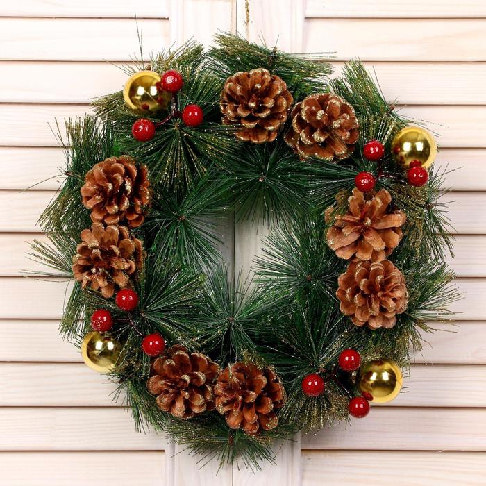 Венок новогодний d-25 см "Золотые шишки и ягодки"