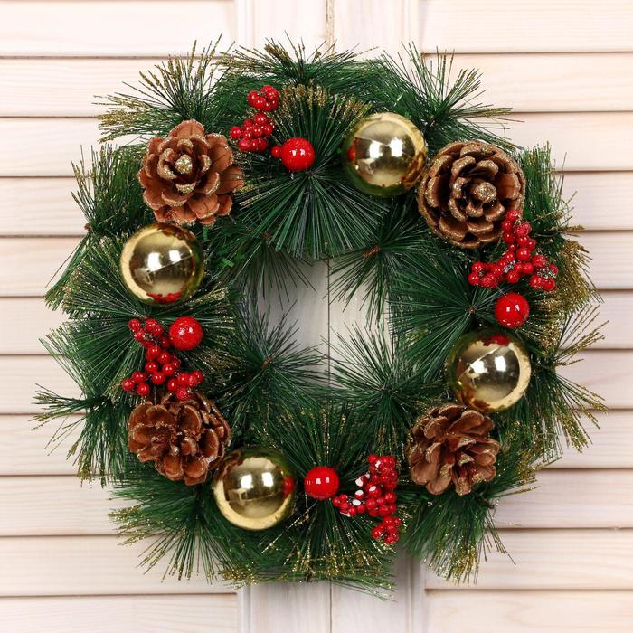 Венок новогодний d-25 см "Шишки и ягодки"