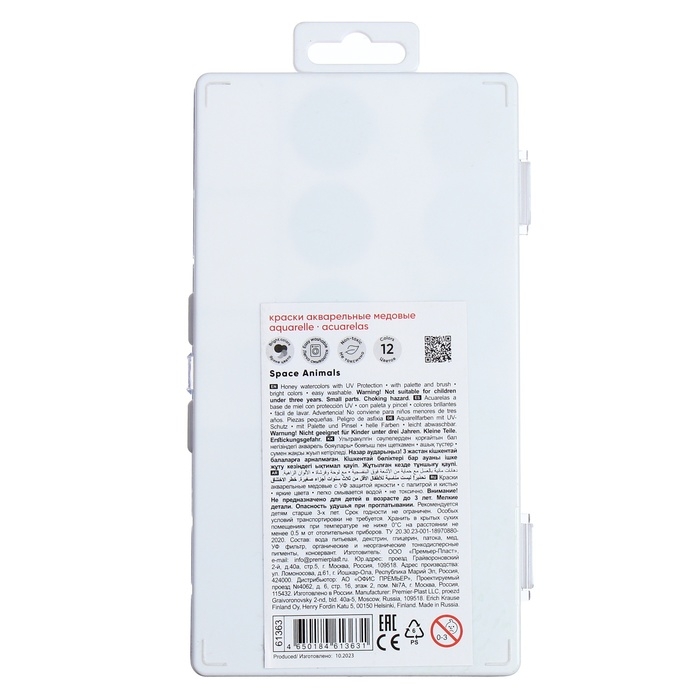 Акварель 12 цветов, ErichKrause Kids Space Animals, медовая, с УФ защитой яркости, пластиковая коробка, европодвес