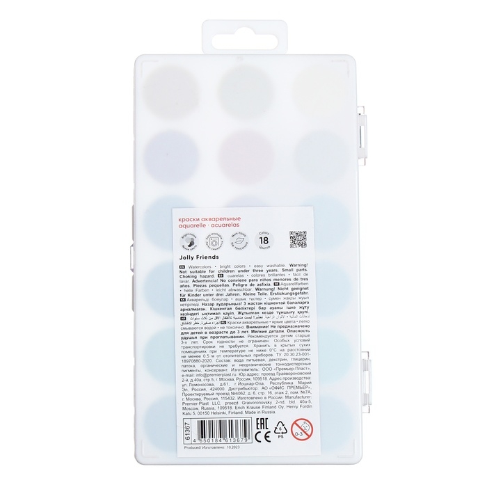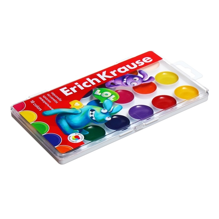 Акварель 18 цветов, ErichKrause Jolly Friends, без кисти, пластиковая коробка, еврподвес