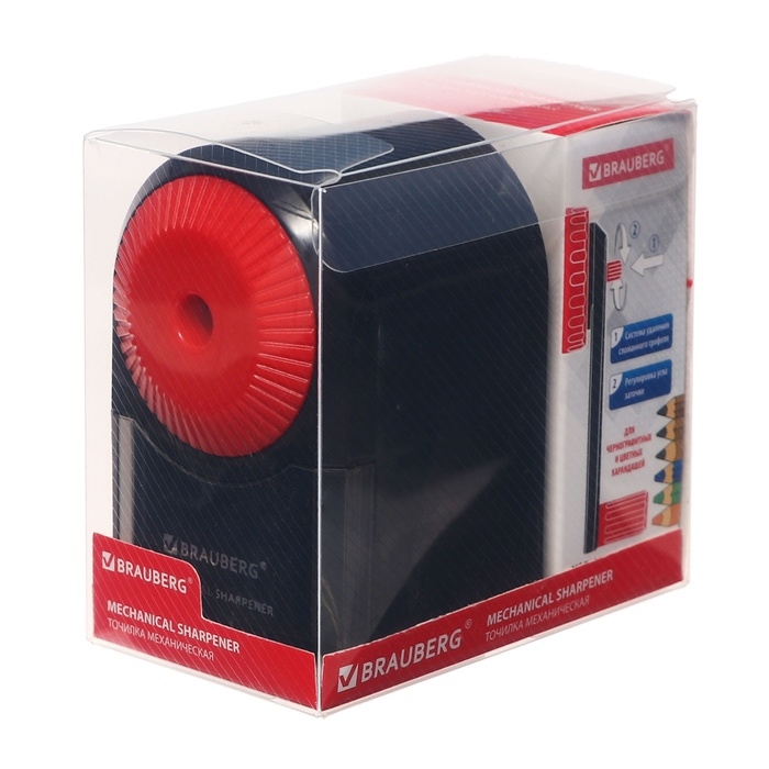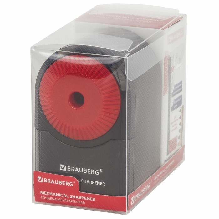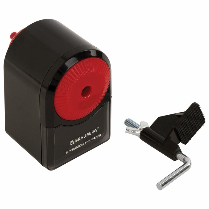Точилка механическая BRAUBERG ULTRA, крепление к столу, корпус чёрный с красным