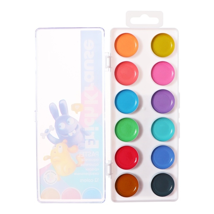 Акварель 12 цветов ErichKrause "Jolly Friends Pastel", в пластиковой коробке, пастельная гамма, европодвес