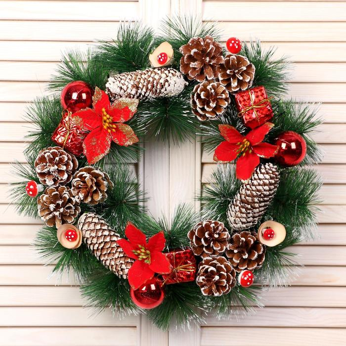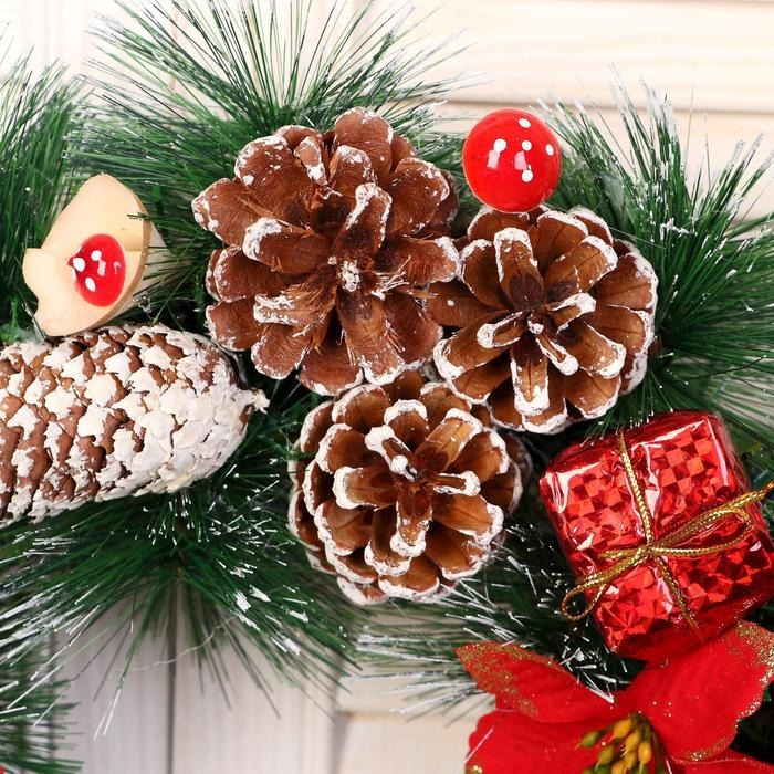Венок новогодний d-40 см "Снежные шишечки с грибочками"