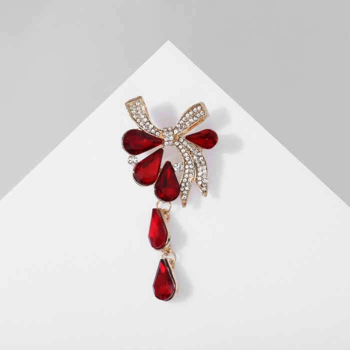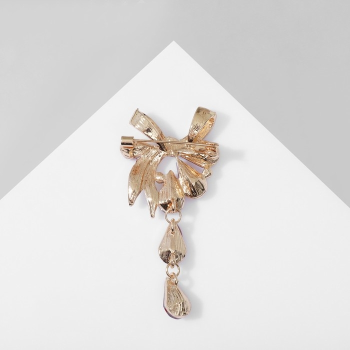 Брошь «Цветочная роса» с бантом, цвет бордово-белый в золоте