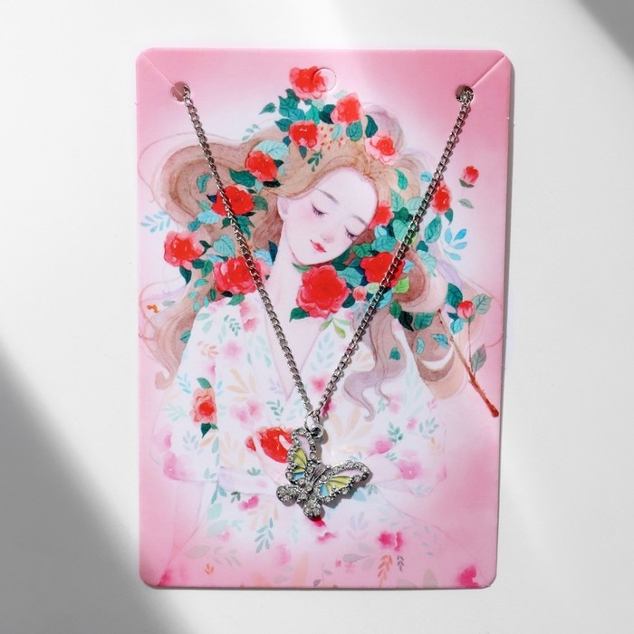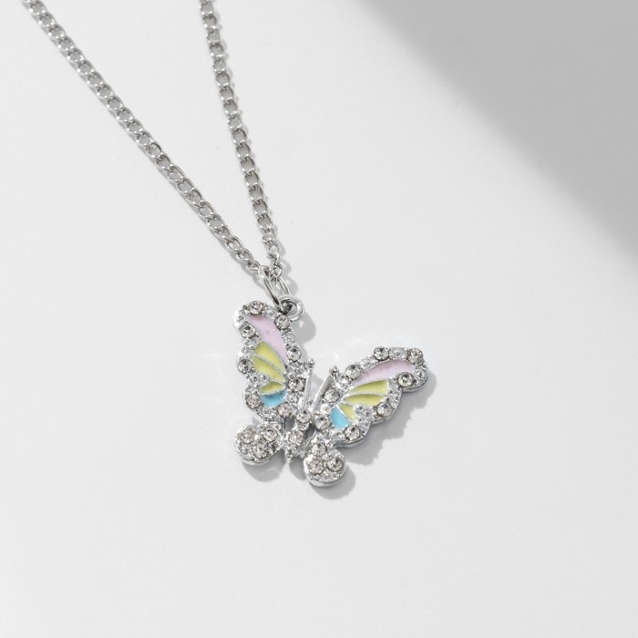 Кулон «Бабочка» ассоль, цветной в серебре, 40 см
