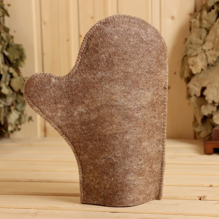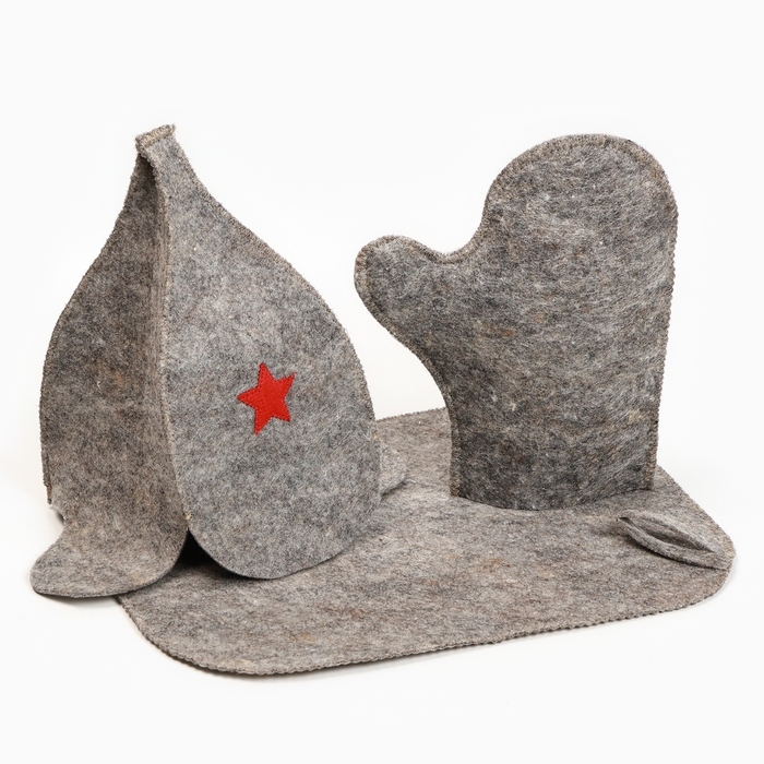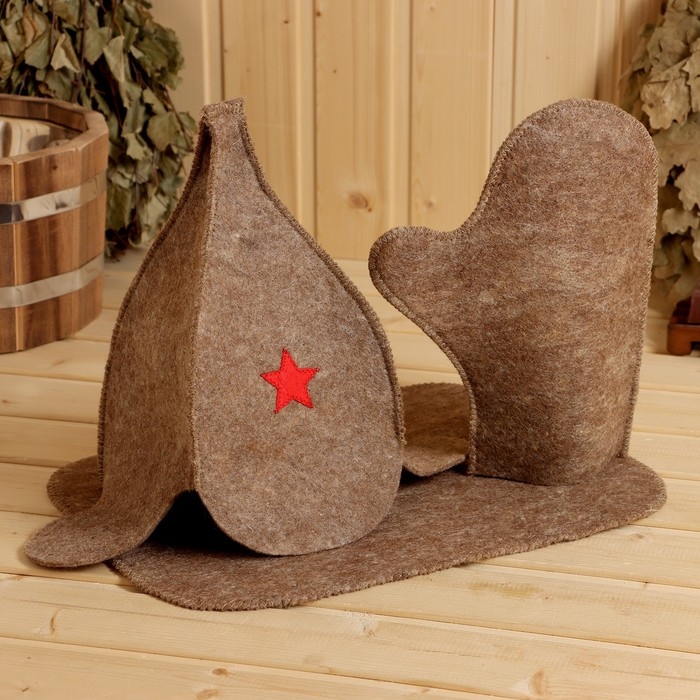 Набор для бани " БУДЕНОВКА", шапка, рукавица, коврик, темный