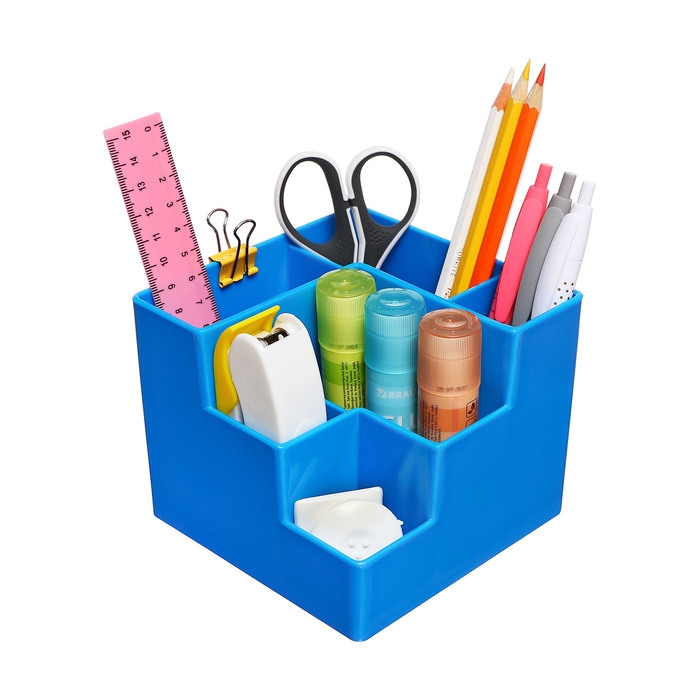 Подставка-органайзер для канцелярии 6 отделений цвет голубой