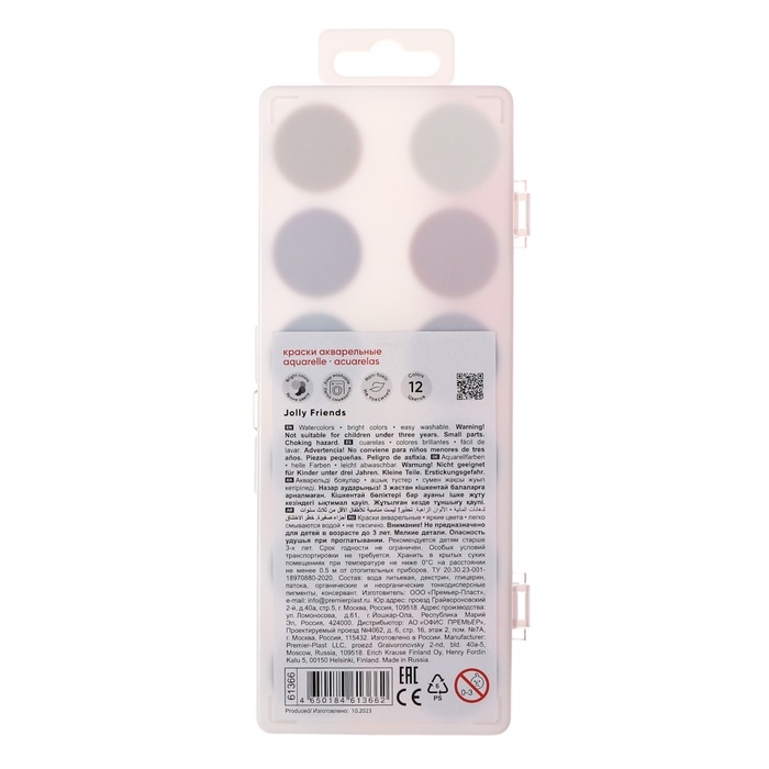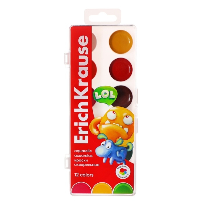 Акварель 12 цветов, ErichKrause Jolly Friends, пластик, с европодвесом