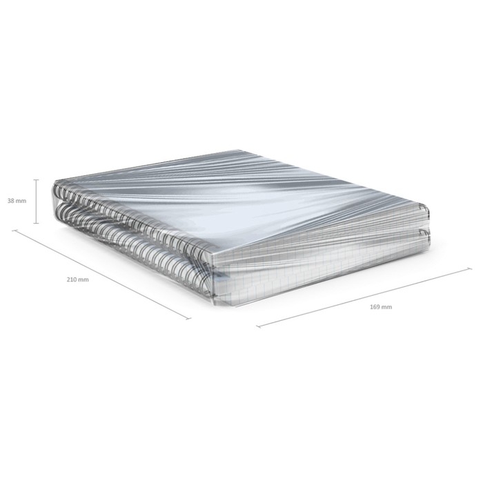 Тетрадь общая формата А5 (148x210 мм). Обложка из высококачественного износостойкого пластика с фактурой "песок". В блоке 80 листов в клетку. Бумага офсетная плотностью 60 г/м2. Цвет линовки - синий. Скругленные уголки обложки. Тип скрепления - спираль. Тетради упакованы в термоусадочную пленку по 4 штуки.