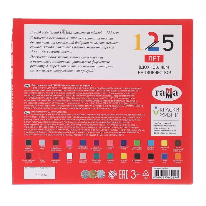 В 2024 году ГАММА выпускает товары в новом дизайне в честь своего 125-летия, сочетающие в себе традиционное качество ГАММА и запоминающуюся упаковку. С момента основания в 1899 году компания прошла долгий путь от красильной фабрики до высокотехнологичного завода, охватывая разные эпохи от царской России до современности. Неизменно одно: только самые качественные и безопасные материалы, уникальные фирменные рецептуры, передовой опыт, постоянный контроль качества. Для творчества нет преград!