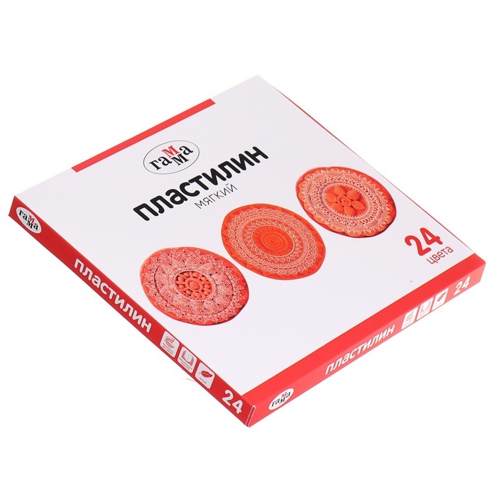 Пластилин 24 цвета 480 г Гамма "Орнамент", со стеком, картон