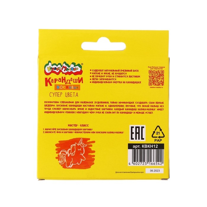 Восковые карандаши "Каляка-Маляка"® разработаны специально для маленьких художников, только начинающих создавать свои первые шедевры.