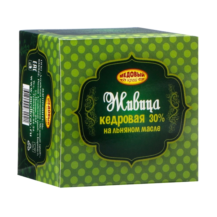 Живица кедровая 30% без добавок, 100 мл - это натуральный продукт, полученный из смолы кедра. Он представляет собой прозрачную жидкость с характерным хвойным ароматом.