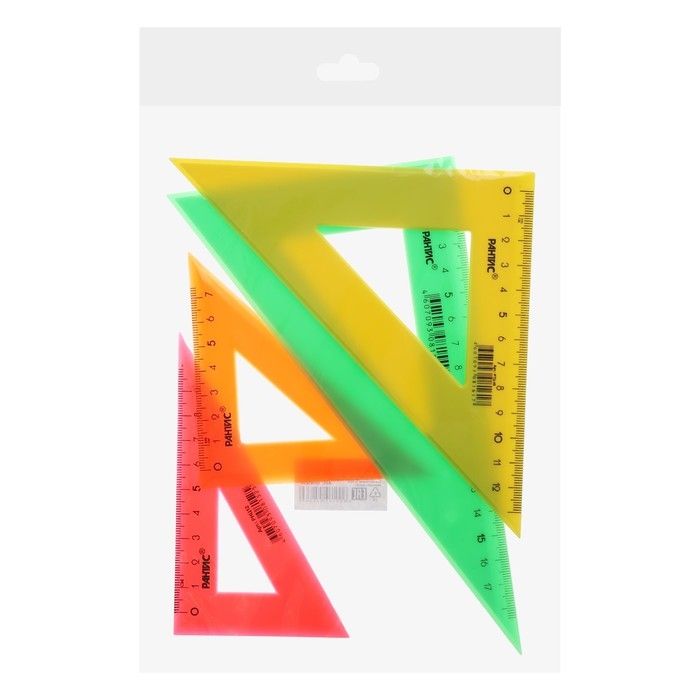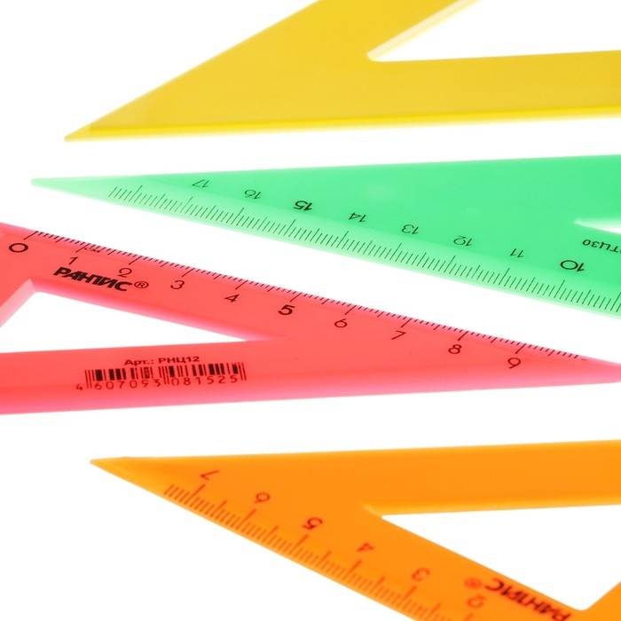 Набор треугольников Calligrata – незаменим для чертёжных и измерительных работ. Длина шкалы варьируется: 9/12/14/20 см. Треугольник имеет чёткую напечатанную миллиметровую шкалу и гладкую глянцевую поверхность. Представлен в цветах ассорти