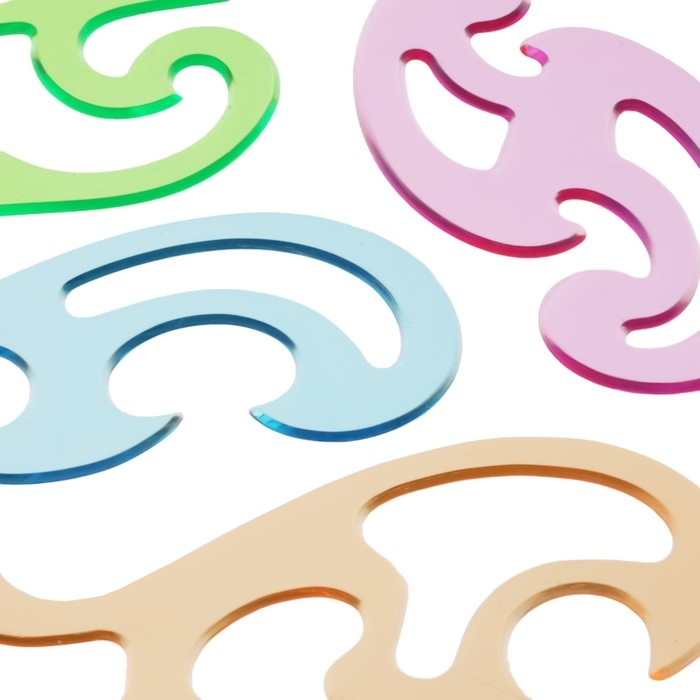 Набор лекал 4 штуки Calligrata, прозрачные, цветные, МИКС