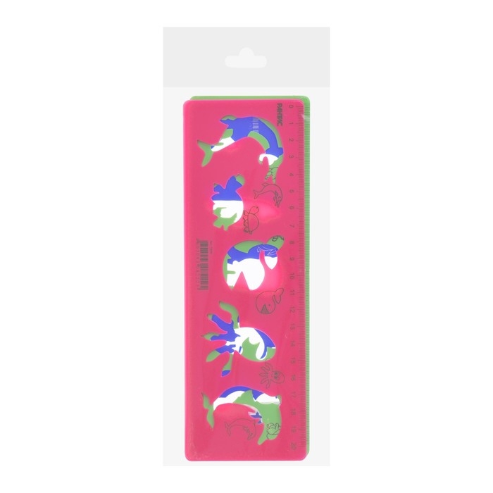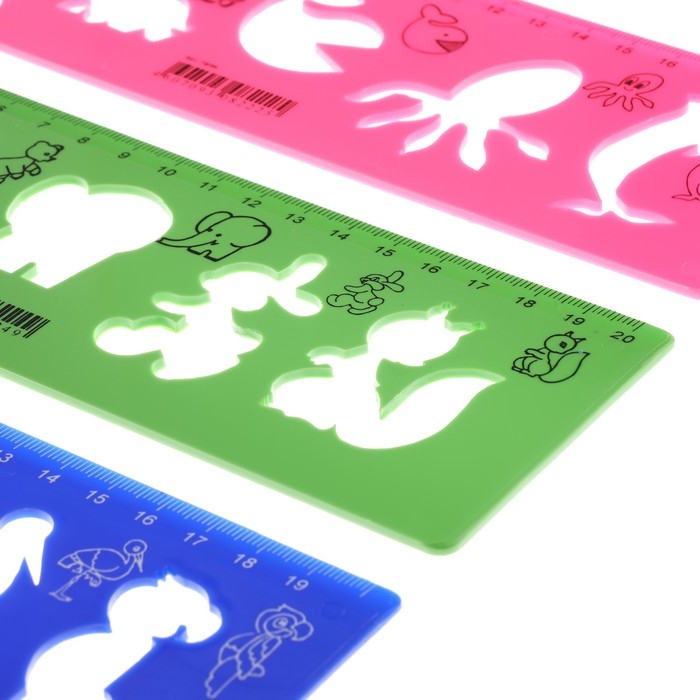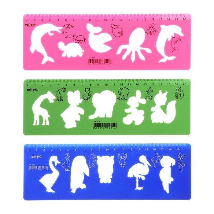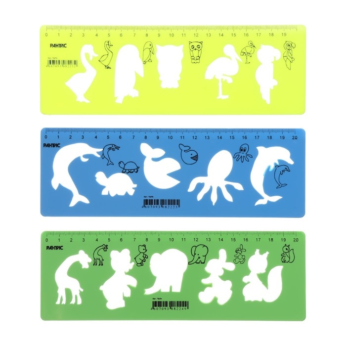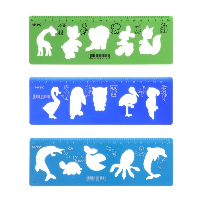 Набор трафаретов животные 3 штуки, Calligrata, + линейка 20 см, МИКС