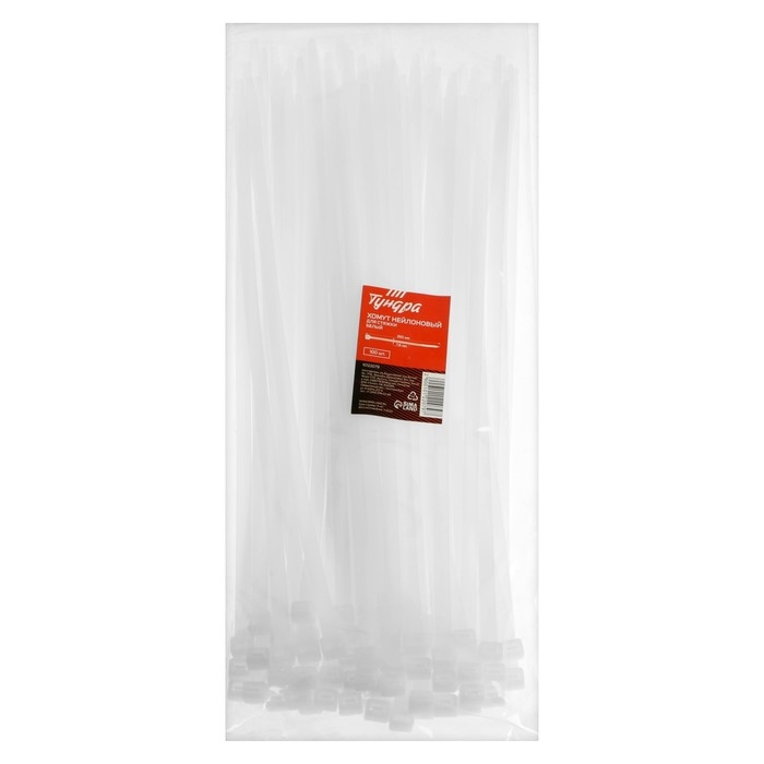 Хомут нейлоновый ТУНДРА krep для стяжки, 7.6х350 мм, белый, в упаковке 100 шт.