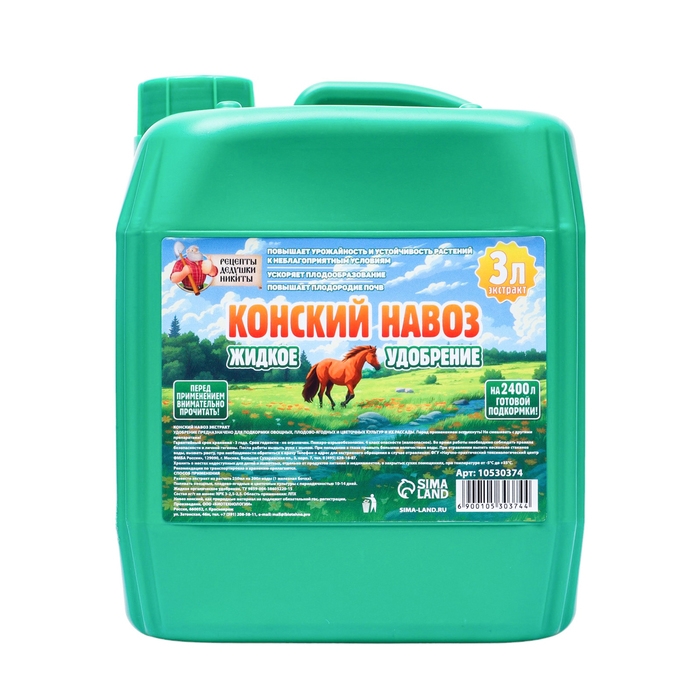 Органическое удобрение Конский навоз "Рецепты дедушки Никиты" экстракт, канистра 3 л