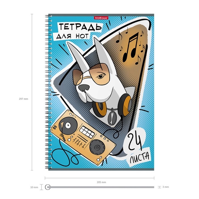 Тетрадь для нот А4 на спирали, 24 листа, ErichKrause POP-Dogs, вертикальная ориентация, пластиковая обложка, блок офсет 100% белизна, МИКС (1 вид в спайке)