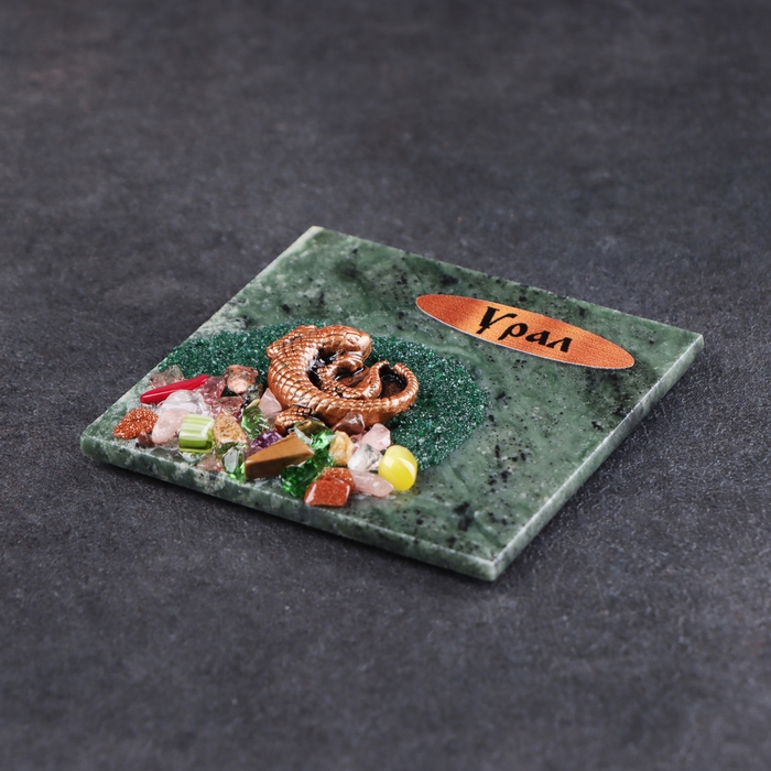 Магнит "Ящерка", квадратный, 5 см, змеевик, гипс, минералы