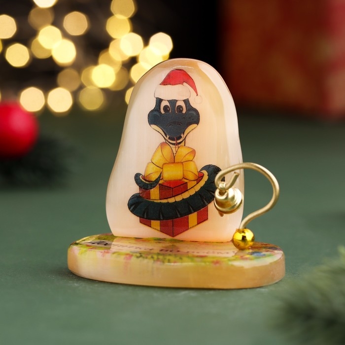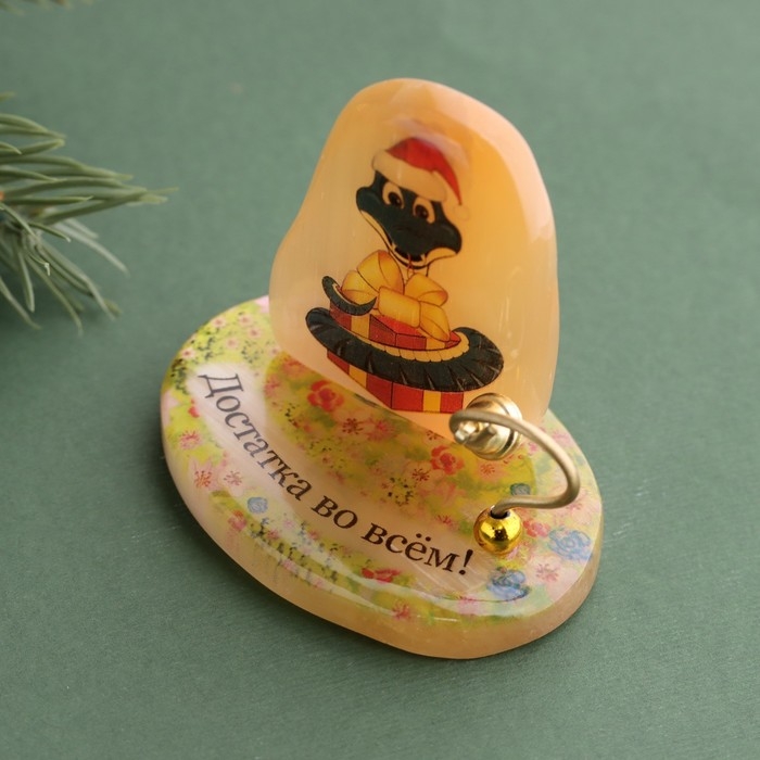 Новый год. Сувенир символ года "Достатка во всём! 2025", с колокольчиком, селенит, 6х6х4,5 см 105837
