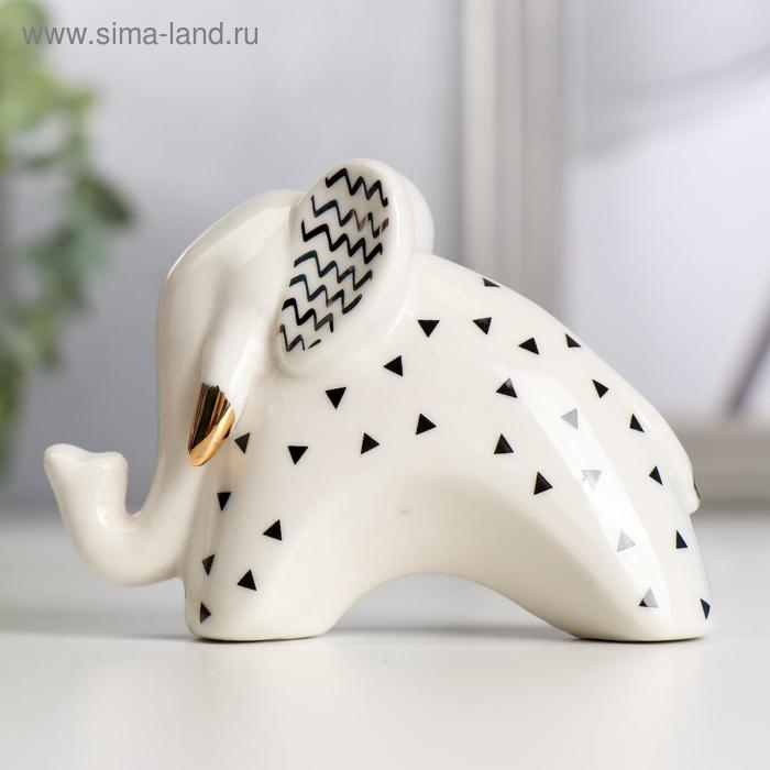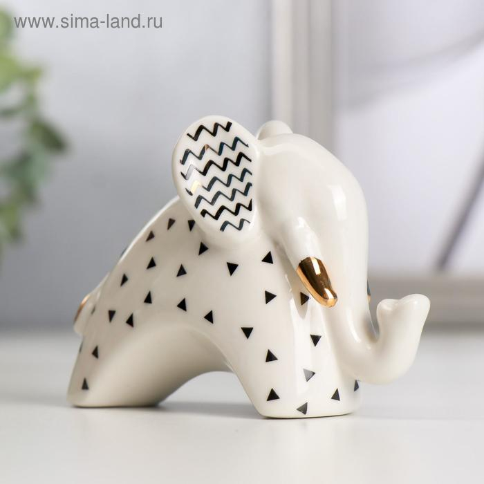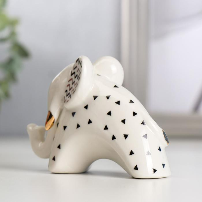 Сувенир керамика "Слонёнок с зигзагом на ушках" бело-чёрный с золотом 7х4,2х9,8 см