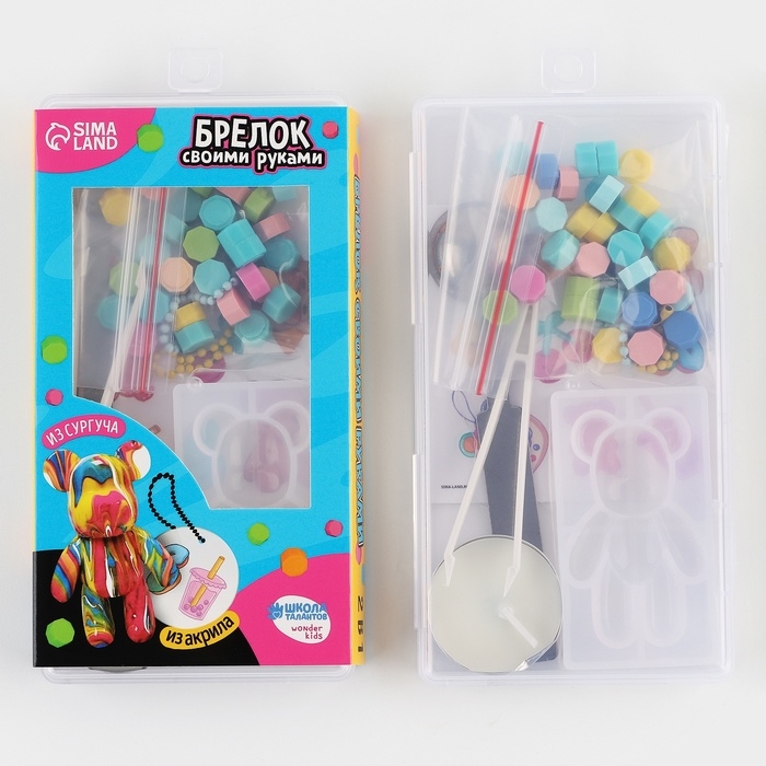 Этот набор не только позволит вашему ребенку проявить свою креативность, но и научит его новым техникам и работе с новыми материалами. Сургуч- это окрашенная плавкая смесь, состоящая из твердых смол. Его нужно расплавить над свечой и залить в молд, чтобы получить яркий брелок.