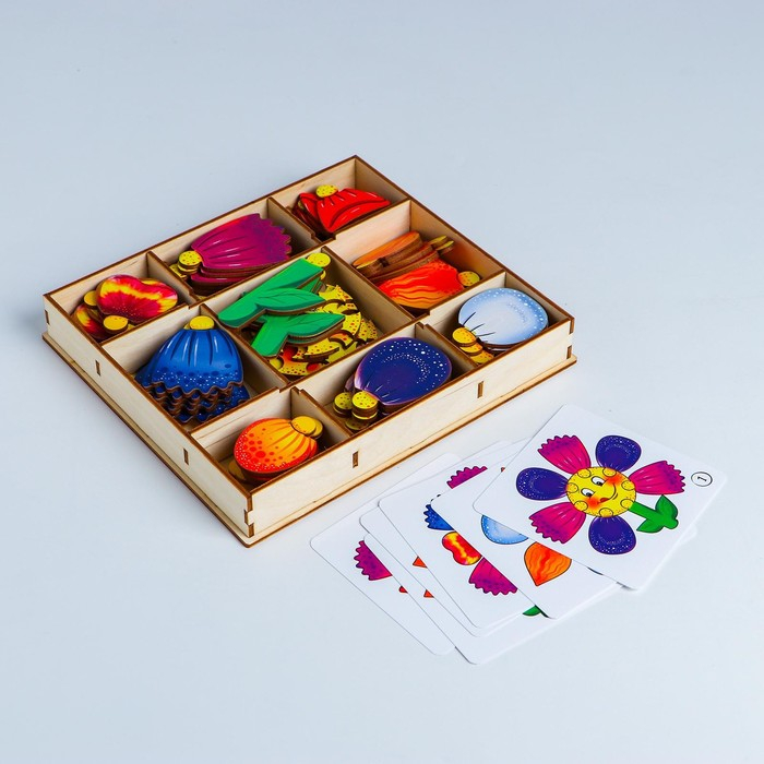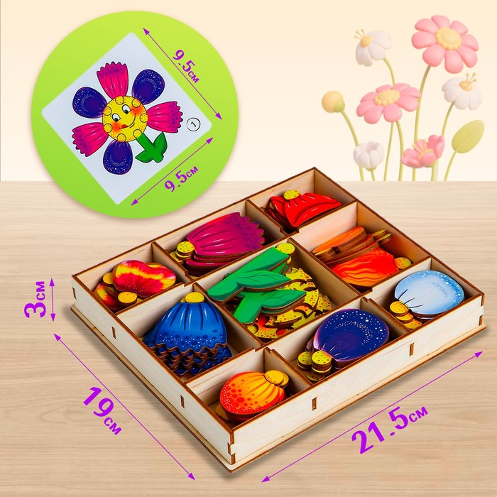 Игровой набор «Цветочный сад» познакомит ребёнка с формами и цветами, а также научит работать по образцу. Подходит для детей от 3 лет.