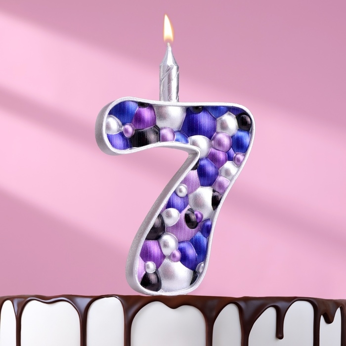 Свеча для торта "Пузырьки", цифра "7", 10 см, серебро