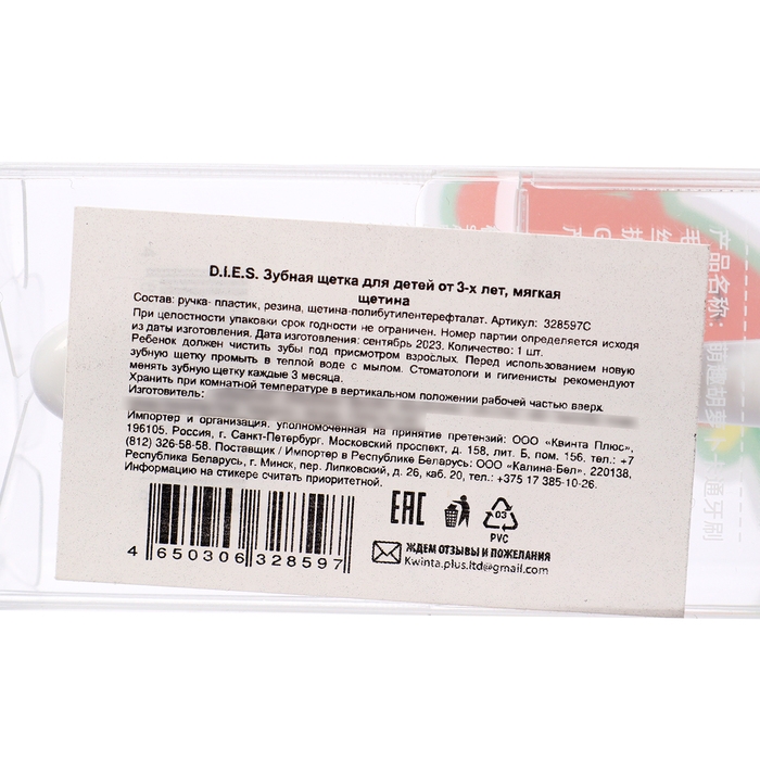 Зубная щетка для детей D.I.E.S. 3+, 1 шт