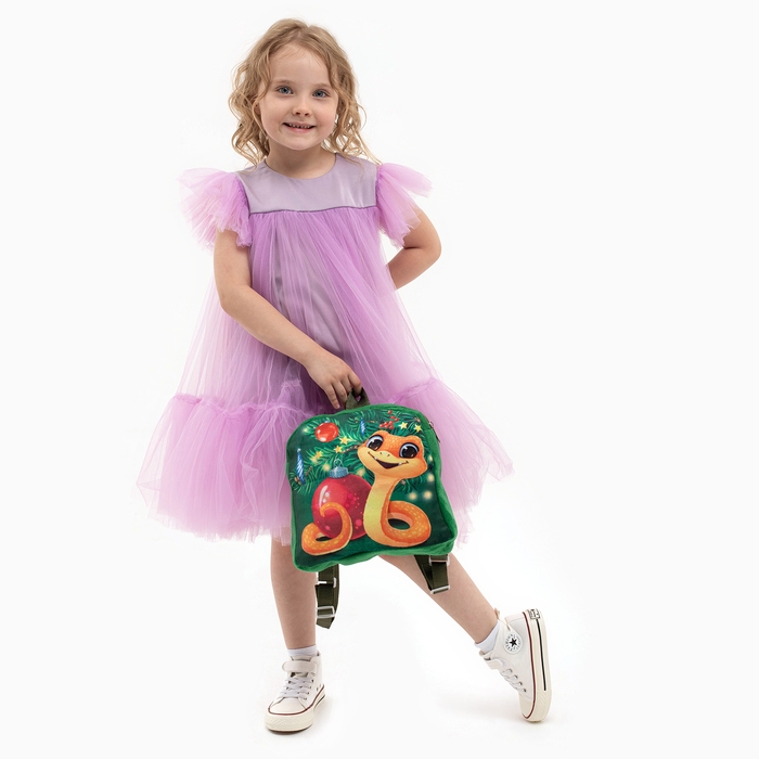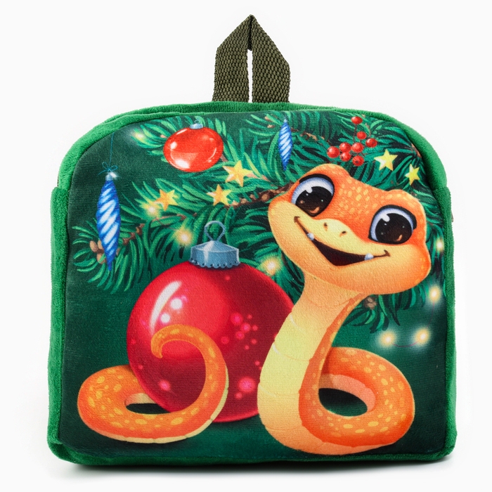 Новый год! Рюкзак детский новогодний «Весёлая змейка», плюшевый, цвет зелёный