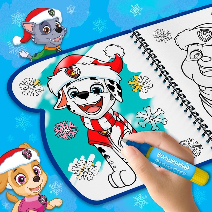 Книжка-раскраска «Рисуем водой. Новый год», Щенячий патруль
