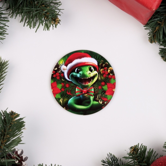 Новый год. Набор "Веселая змейка", подставка под горячее и 2 подстаканника, D-20,5 см