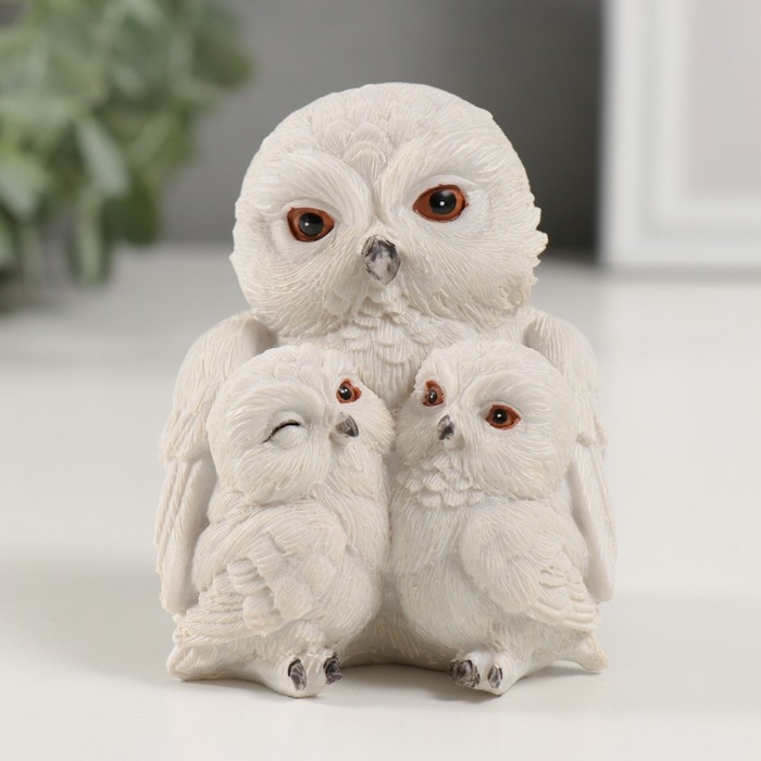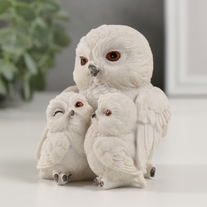 Сувенир полистоун "Семья белых совушек" 8х7х8,5 см