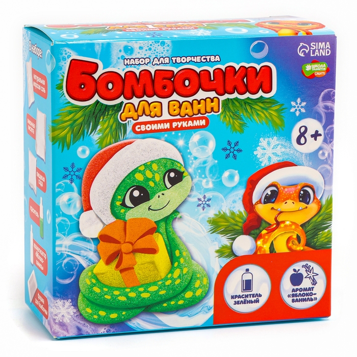 Бомбочка для ванн своими руками на новый год «Змея с подарком», новогодний набор для творчества, символ года 2025