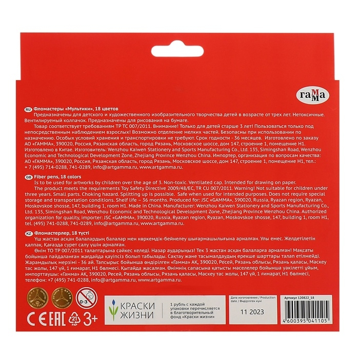 Фломастеры 18цв Гамма "Мультики", смываемые, карт уп, европодвес (120822_18)