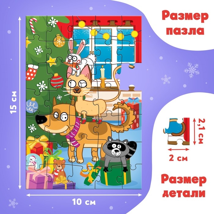 - Пазлы поставляются в праздничной коробке размером: 24 × 4,5 × 24 см.